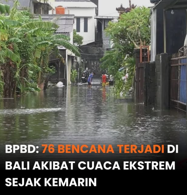 BPBD Bali Catat 76 Kejadian Bencana Akibat Cuaca Ekstrem, Banjir Dominasi Dampak di Kota Denpasar